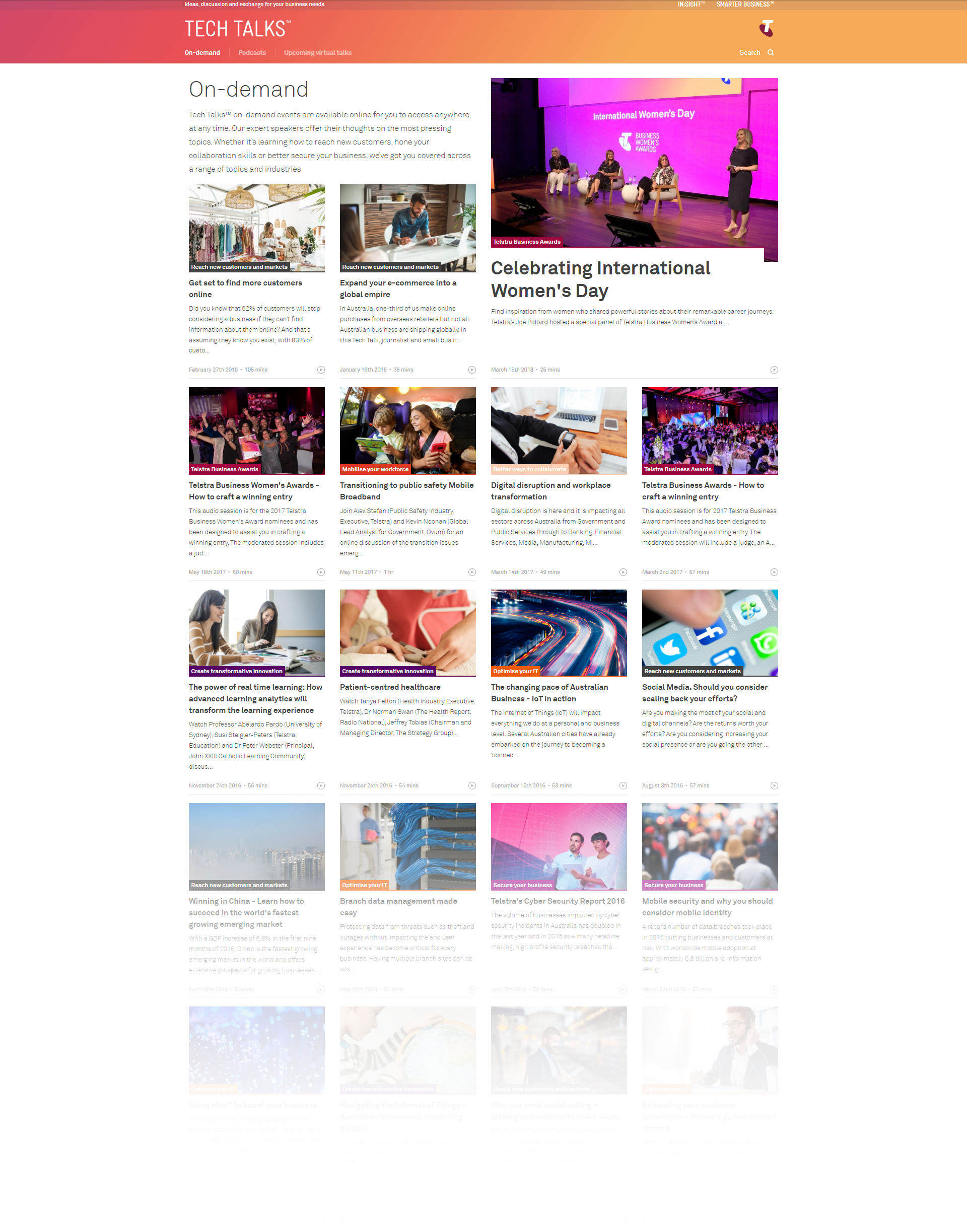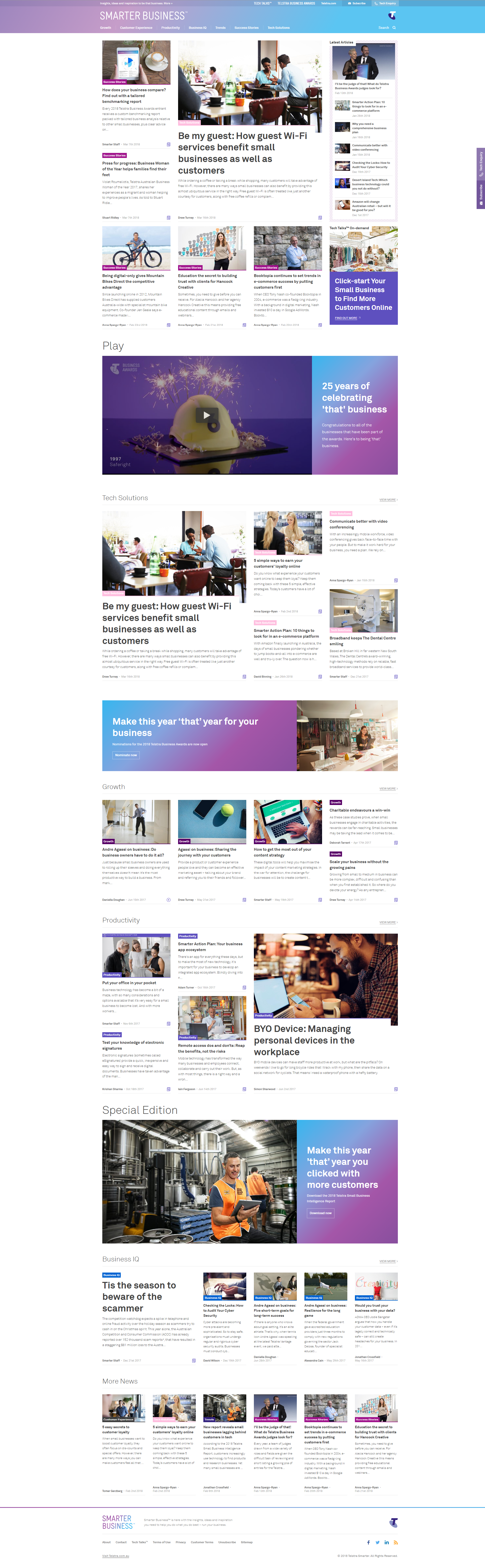 I designed the website for Smarter Business Ideas, Telstra’s thought leadership platform for Australian small businesses. It’s the first site in Australia to offer a comprehensive mix of expert advice, inspiring case studies, practical tips, and tools—all tailored to help small businesses thrive.