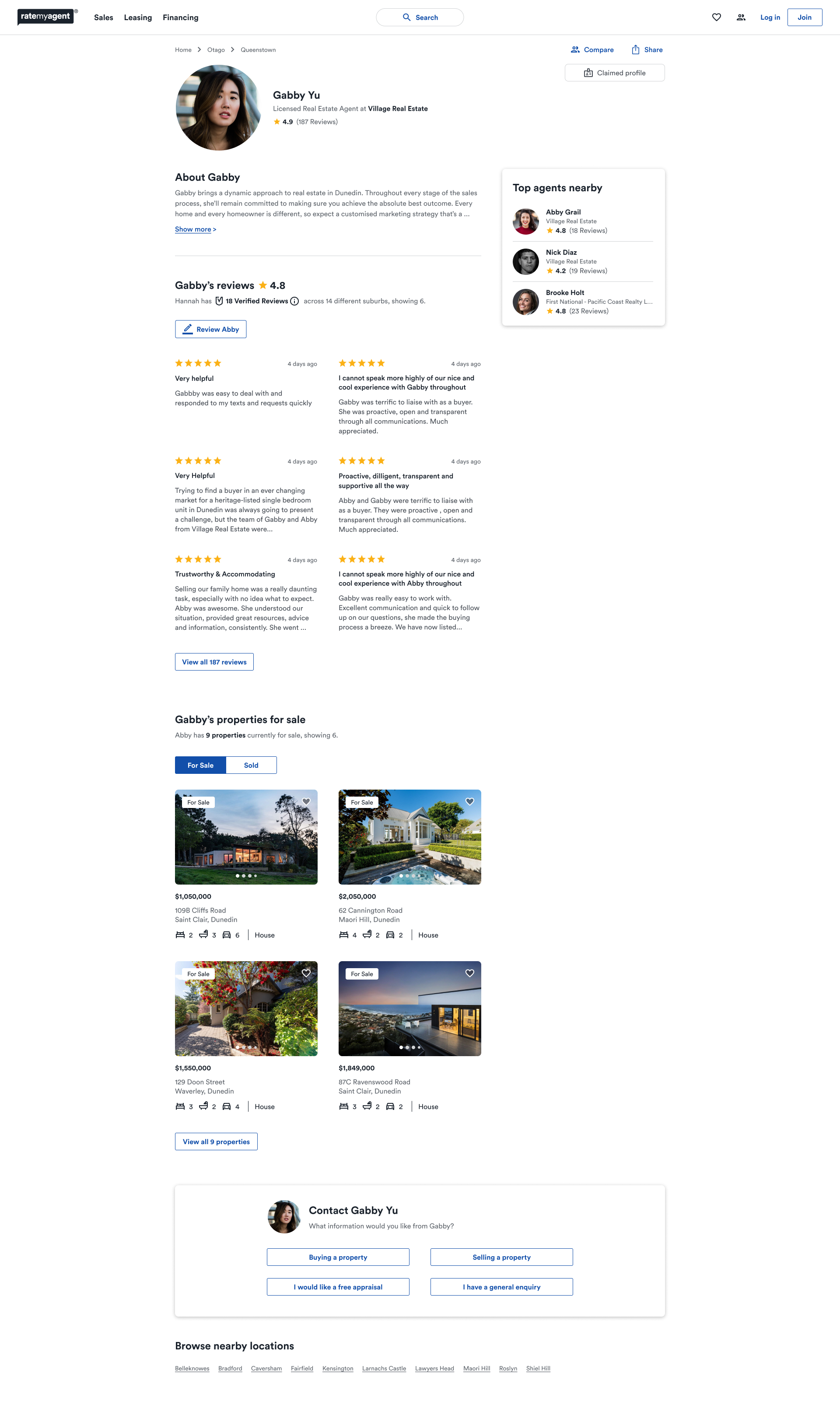 The RateMyAgent profile solves a few problems, for real estate professionals (agents, agencies and mortgage brokers) it’s shared as digital resume to help secure a deal. For homeowners and potential buyers it provides the best information about a real estate agent to help them choose who to work with.