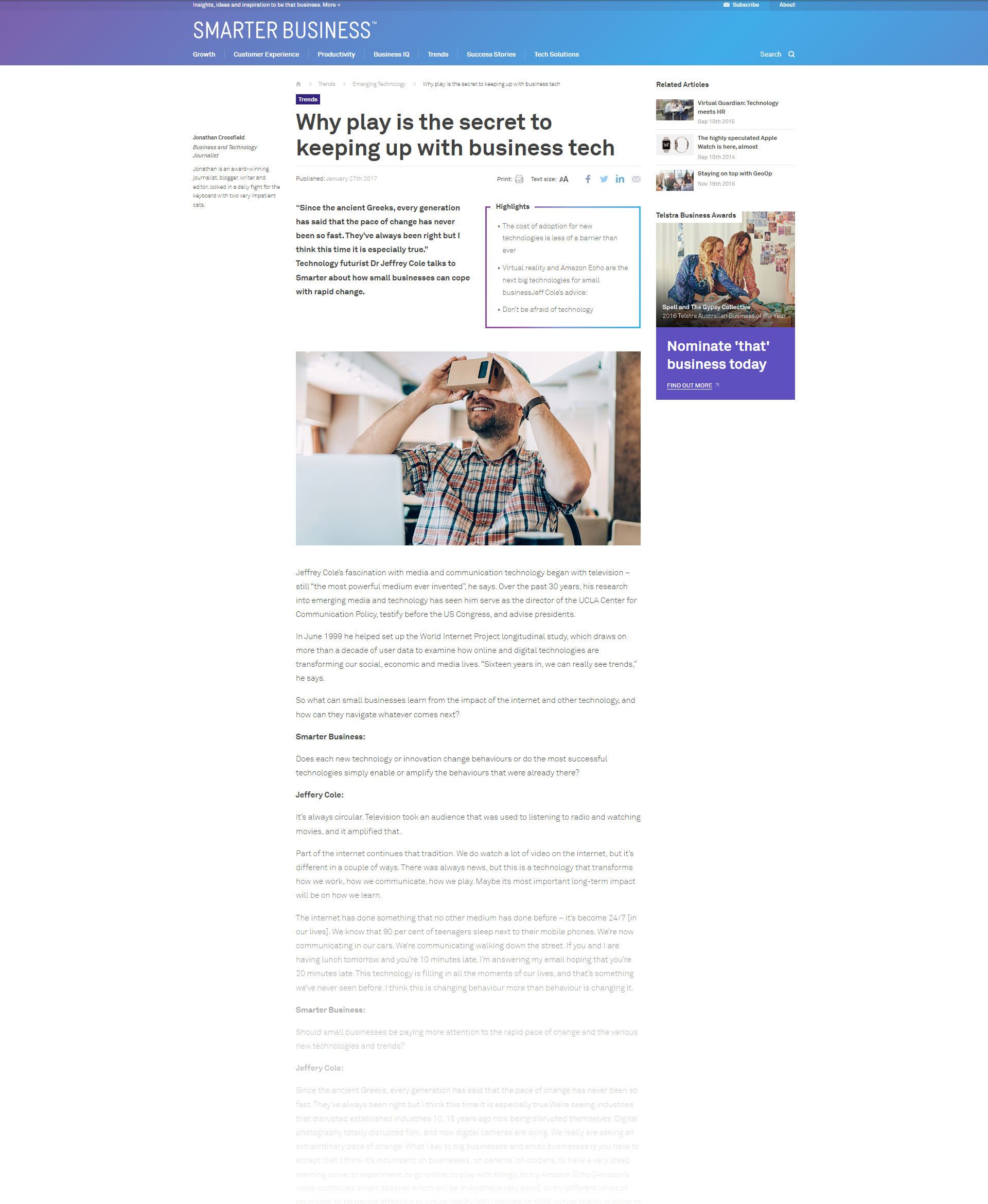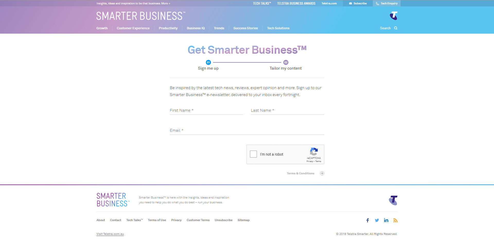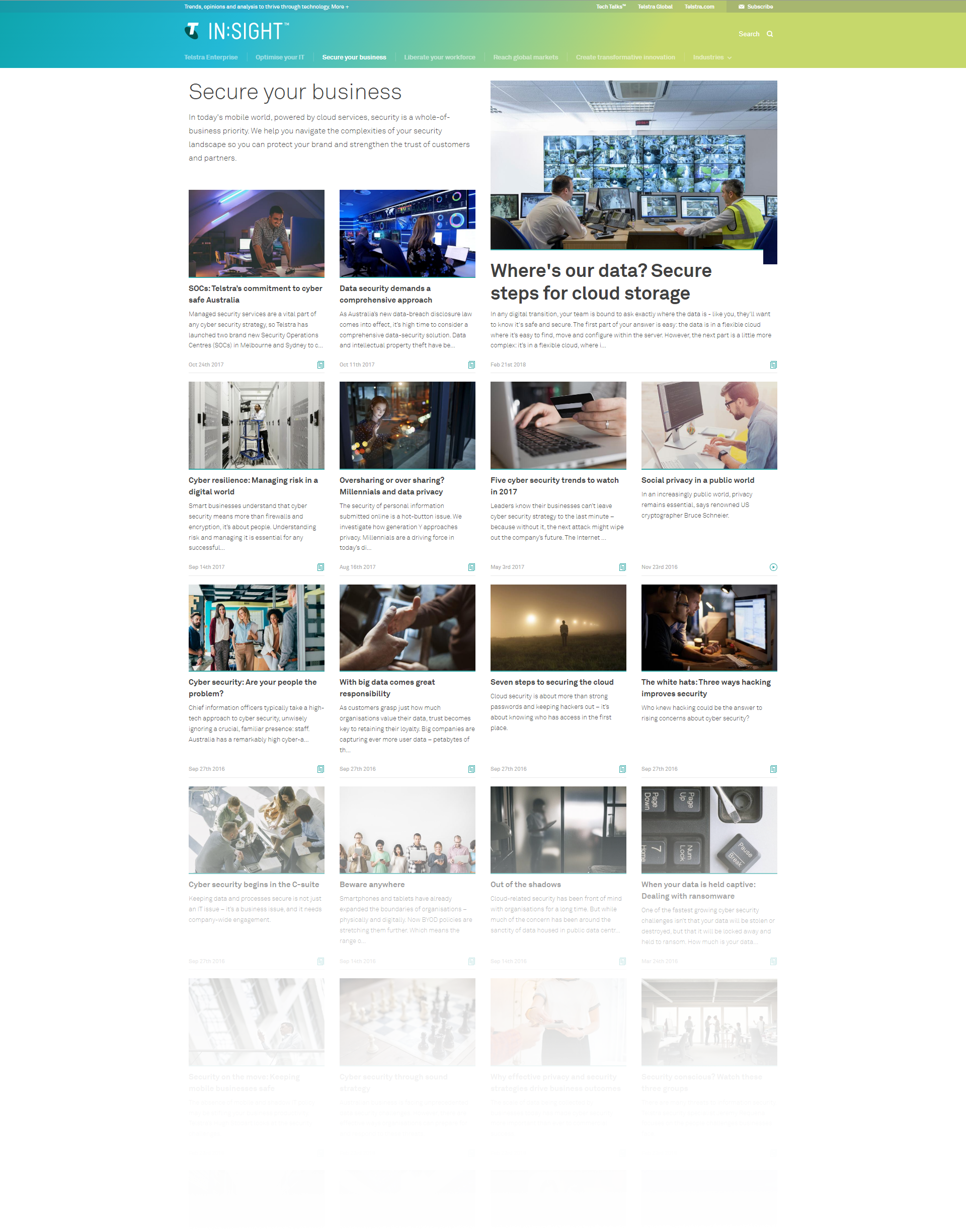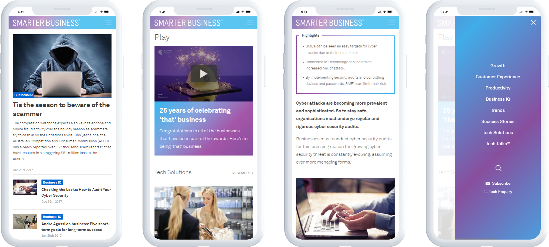 I designed the website for Smarter Business Ideas, Telstra’s thought leadership platform for Australian small businesses. It’s the first site in Australia to offer a comprehensive mix of expert advice, inspiring case studies, practical tips, and tools—all tailored to help small businesses thrive.